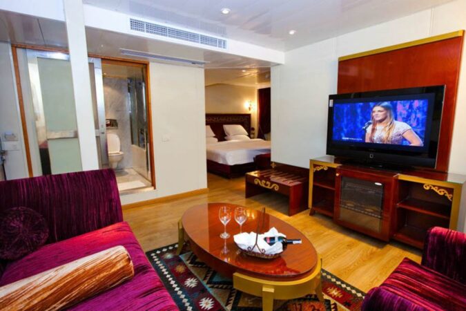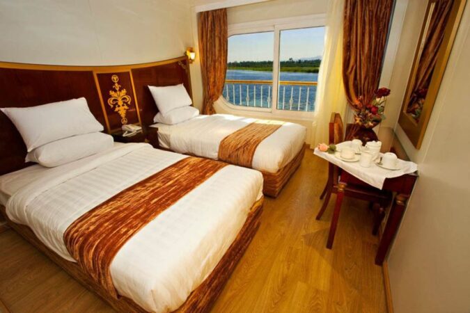 Introducing the Al Hambra Nile Cruise, setting sail in April 2010 and revolutionizing the Nile cruising. Elevating standards, our ship boasts unparalleled 31-square-meter suites and a sprawling 6-square-meter bathroom – a pinnacle in the industry. A pioneering concept, we proudly feature a two-floor full-service spa with an indoor pool and exclusive amenities. Crafted with distinction, the M/S Al Hambra caters to dignitaries and discerning guests seeking a fresh perspective on Nile luxury. With opulent, extra-large suites, it beckons VIPs and first-class travelers to embark on an unmatched journey through Luxor and Aswan. Redefine your Nile cruise experience with the epitome of indulgence aboard Al Hambra.
