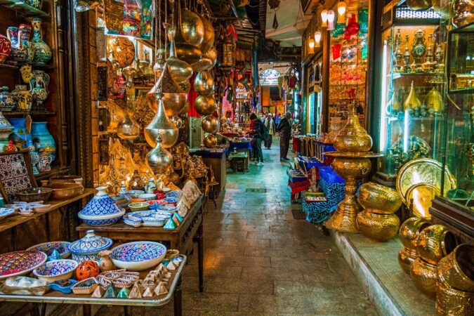 As our adventure continues, we’ll tour the captivating neighborhood of Islamic Cairo. Get ready to explore Khan El Khalili, Cairo’s historic bazaar, known for its vibrant atmosphere and captivating merchandise. Embark on a sensory journey as you stroll through its winding alleys, discovering an array of exquisite brassware, brassware, perfumes, leather goods, silverware, antiques, and much more.