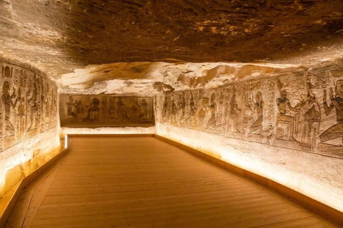 Prepare to be amazed by the magnificence of the Great Temple, also known as the Temple of the Sun, dedicated to Ramses II and four divine deities. Your expert Egyptologist guide will skillfully reveal the secrets of the past as you marvel at the intricate statues, rock carvings, and ingenious flood protection mechanisms, expertly implemented by the Egyptian government and UNESCO to safeguard these wonders from the impact of the Aswan High Dam.